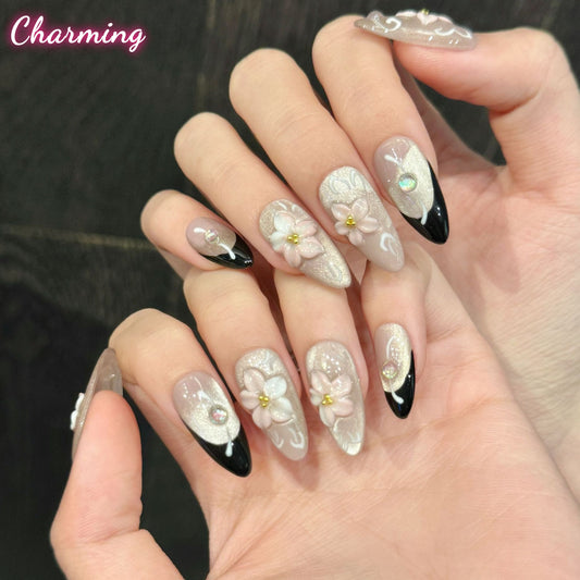 Petals in the Obsidian / Handmade Nails