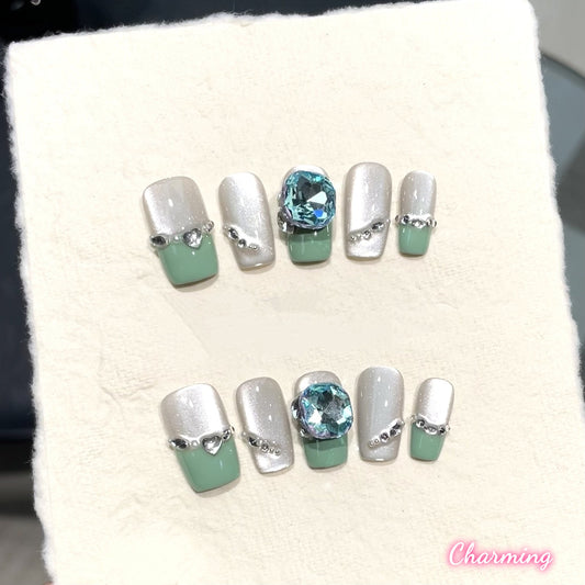 Merald Cat's Eye/ Handmade Nails