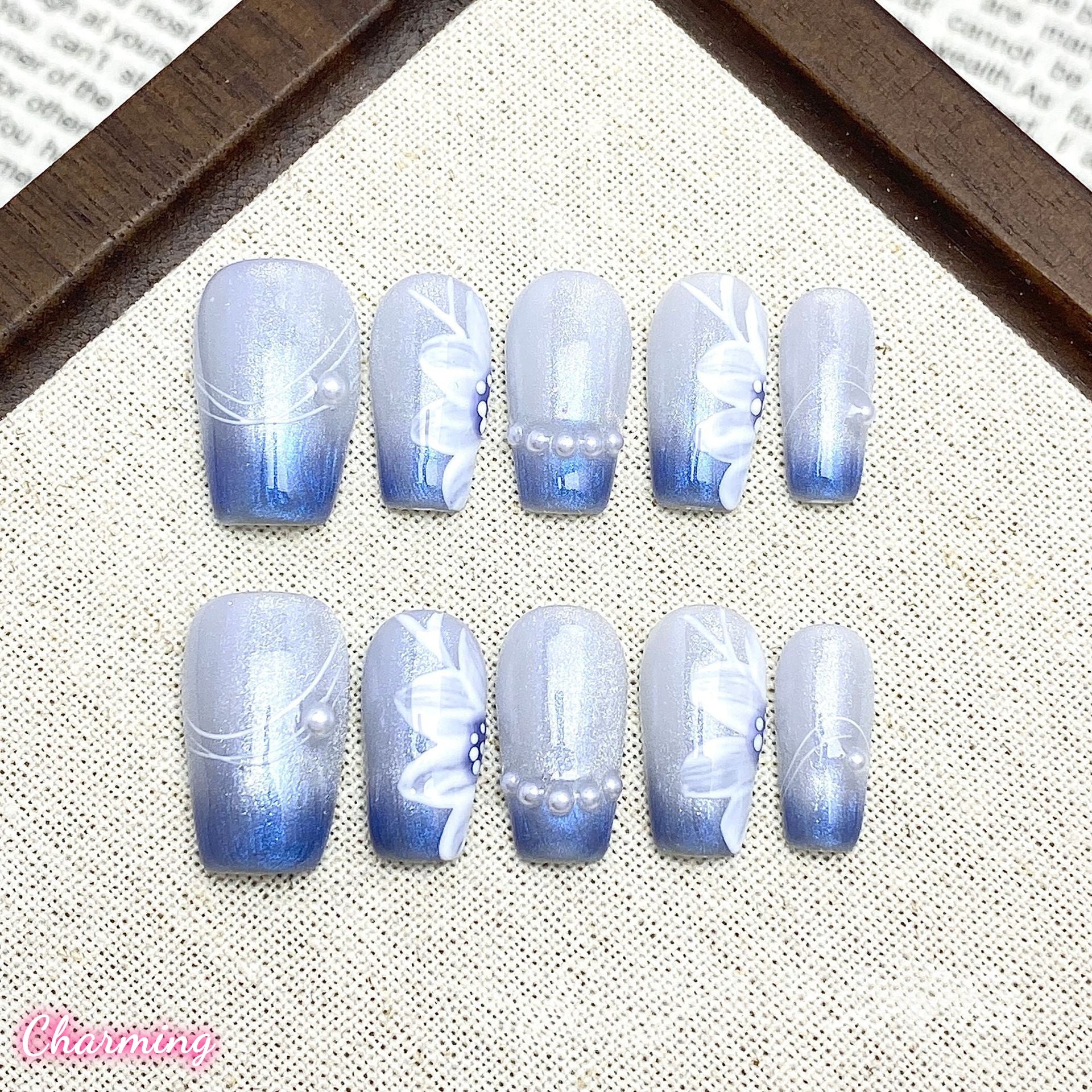 Hand pressed to perfection! 💙✨ Each manicure set is meticulously handcrafted.