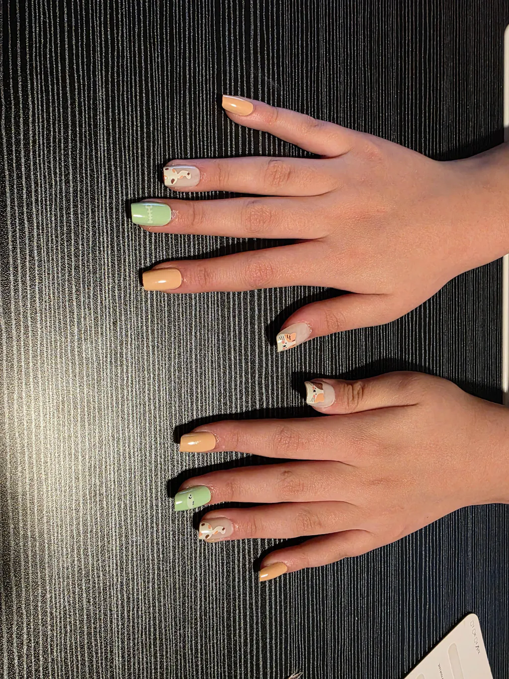 I requested short nails and they came through. A mix of different styles and the added extras like the nail files and glue were much appreciated. Would have been 5 star but I said I didn't like sanrio characters and all the stickers that came with the package were sanrio characters.
